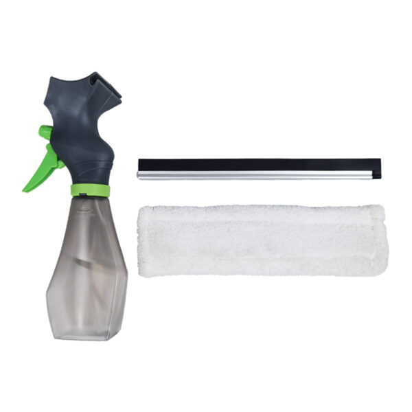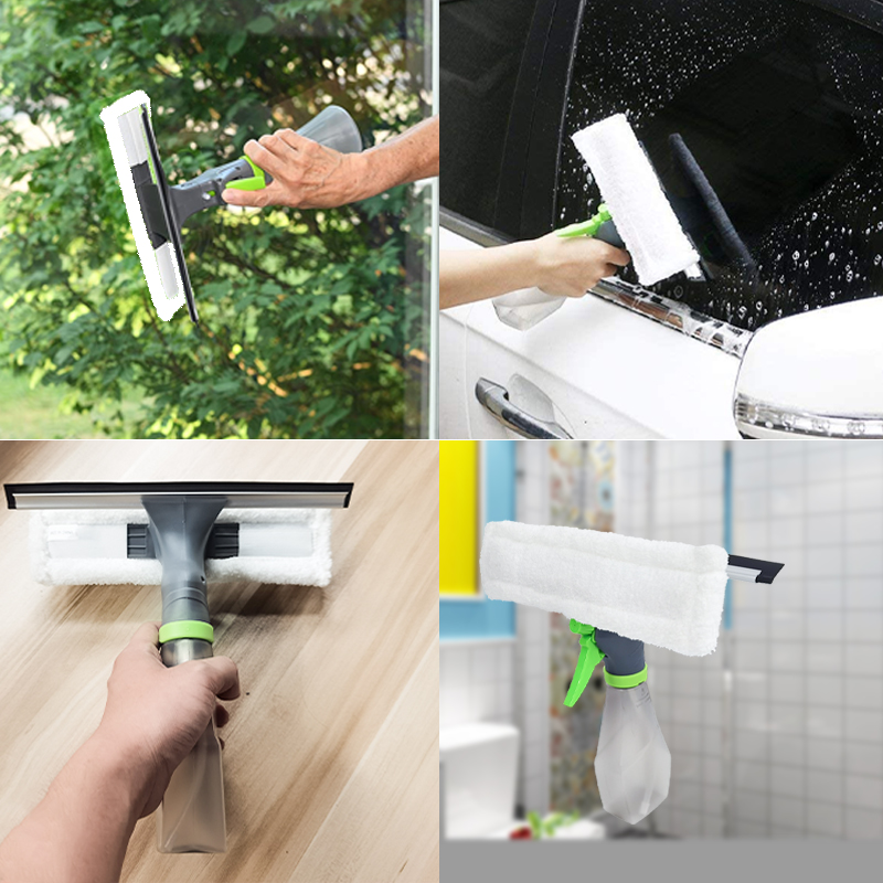 Spray: Adjustable head for either a mist spray or a direct spray Scrub: Scrub stains and dirt with the microfiber scrubber Scrape: Rubber scraper to ensure that no damage occurs to the window. Metal slide is bent to keep the scraper from falling out. Bottle: Included 8oz Non Slip Bottle so you can start and complete your cleaning without ever having to leave and grab more equipment.