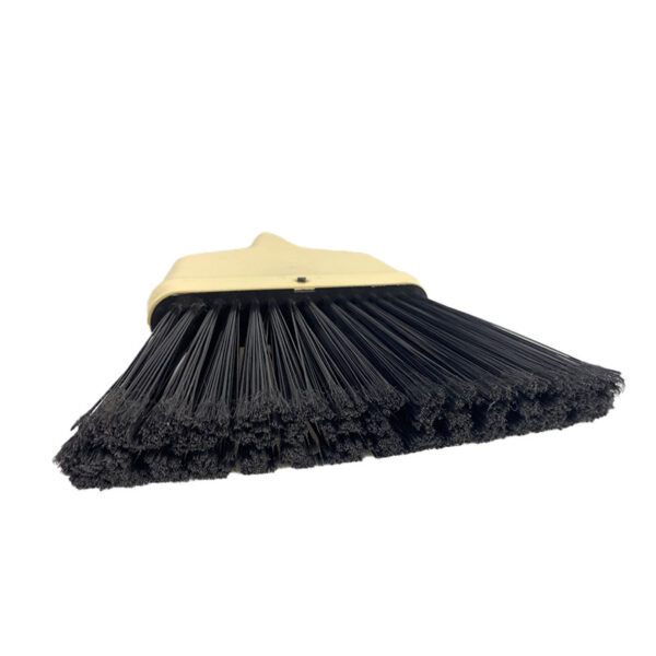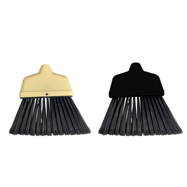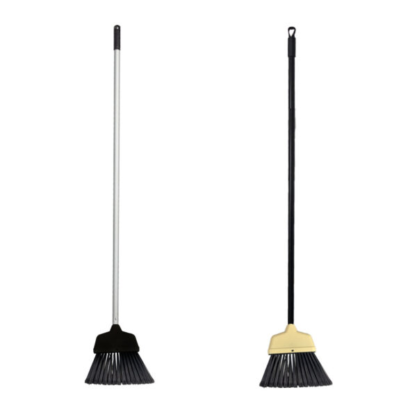 36 inch lobby-style angled bristle brooms for use in commercial spaces Smaller size for easy spot cleaning or sweeping corners and hard-to-reach areas Durable plastic bristles pick up and collect dust and debris efficiently Rotating cap with hook hole for hanging storage Lightweight, compact design