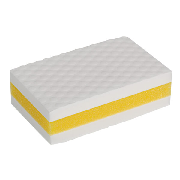 Powerful micro-scrubbers for the toughest stains Chemical-free; requires only water Most effective on hard, smooth surfaces Melamine cleaning surfaces on both sides, foam in center for added durability Eliminates crayon, ink, permanent marker and scuff marks