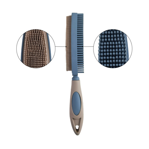 Effectively removes lint and fur from furniture and clothing. Washes clean with soap and water. Does a great job cleaning car seats and mats. Two sided brush: Rougher side works better on furniture and upholstery. The softer side does a gentler job on pets or clothing. Feels solid and doesn’t slip in hand due to balanced handle.